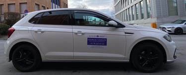 Les cours se déroulent sur une Volkswagen Polo automatique, parfaitement équipée pour la formation :